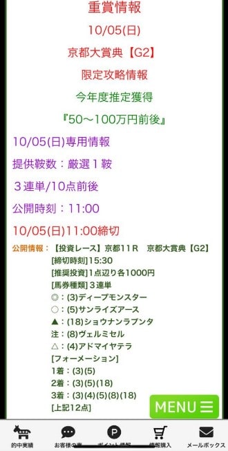 サイト内に記載されていた的中画像を引用しました、今週末の的中獲得にお役立て下さい!
