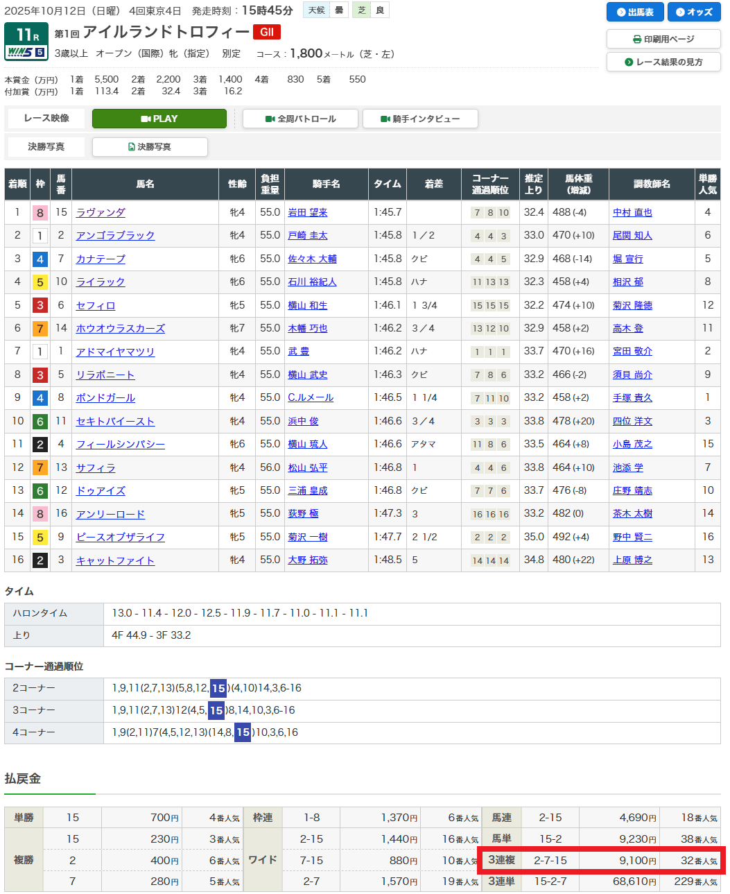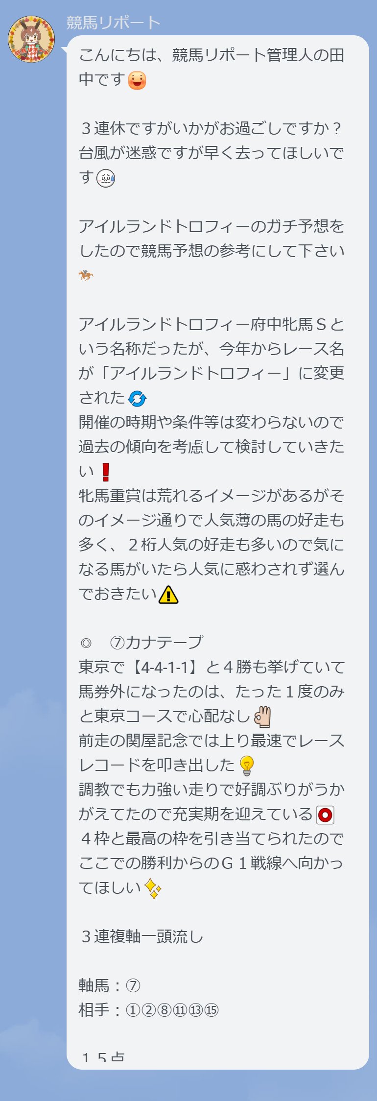 3日間開催なかび、10月12日(日)第1回アイルランドT(G2)ガチ予想を当日12時過ぎに配信した予想が大的中◎