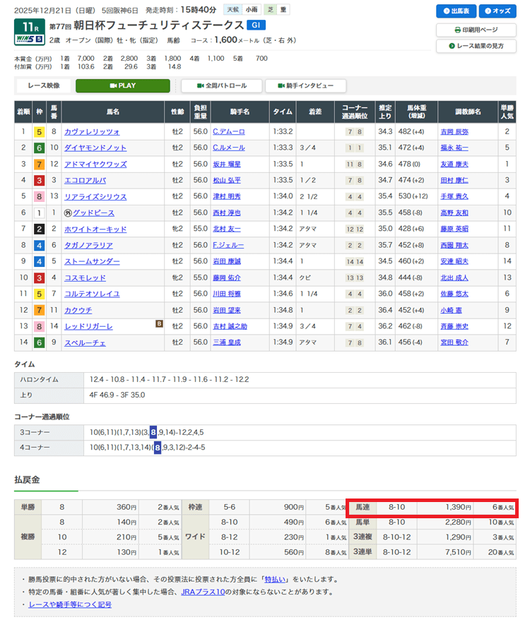 まずは少しだけ近況から、阪神JF(GⅠ)でギャラボーグを注目馬に挙げて2着、朝日杯FS(GⅠ)ではカヴァレリッツォが1着。