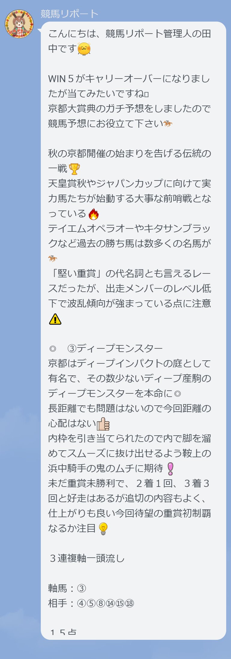10月5日(日)第60回京都大賞典(G2)ガチ予想を当日12時過ぎに配信した予想が大的中◎