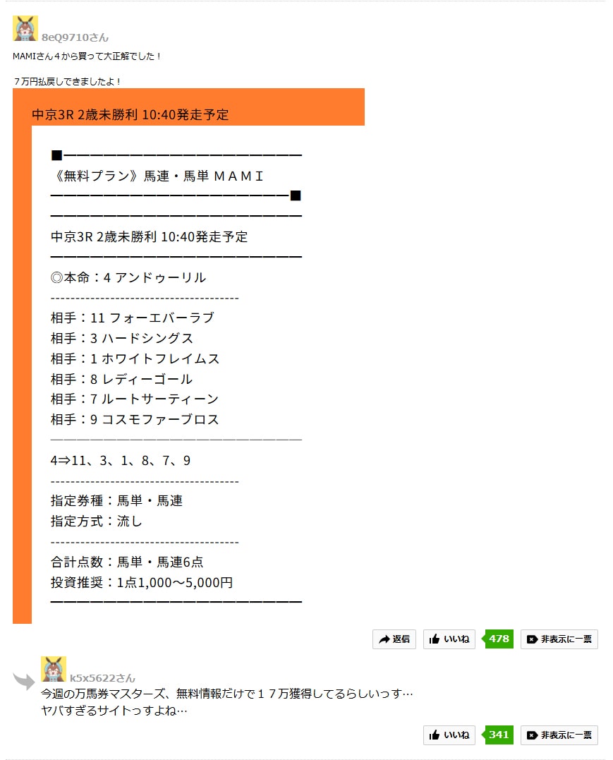 万馬券マスターズのサイト内のクチコミにこのような声もありました。