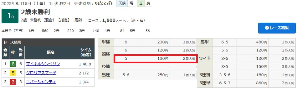 8月の中央競馬を無料情報でかなり稼いでるようです。