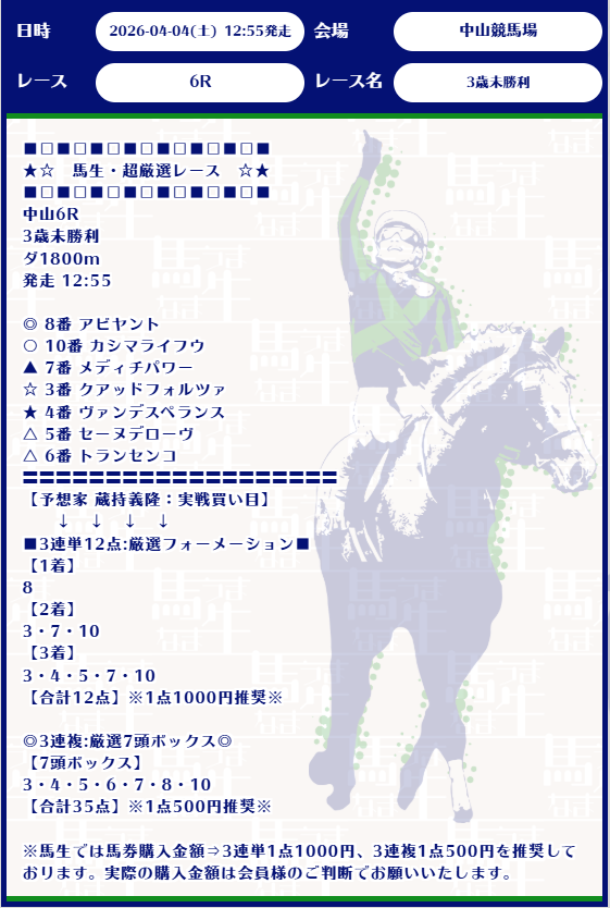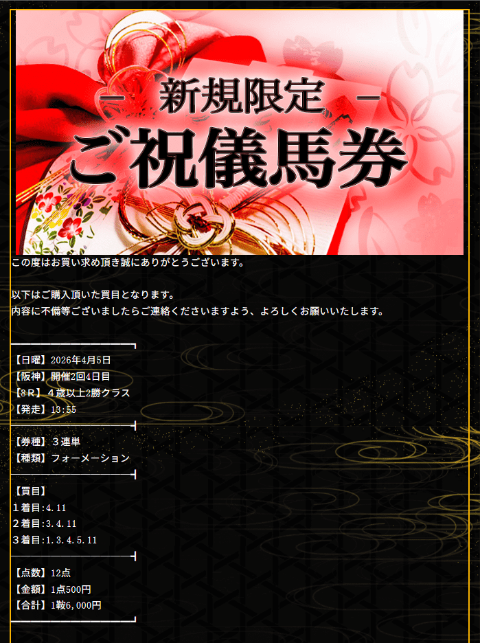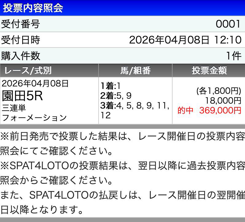 4月一発目の無料情報で万馬券当たって12万900円朝一から的中! まじで大阪杯の軍資金サンキューです! 明日の朝一?無料情報も期待しまくりです!