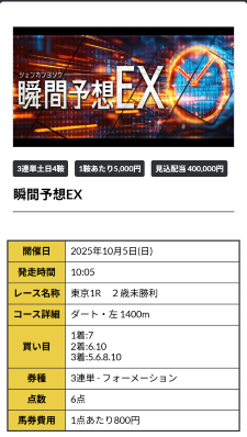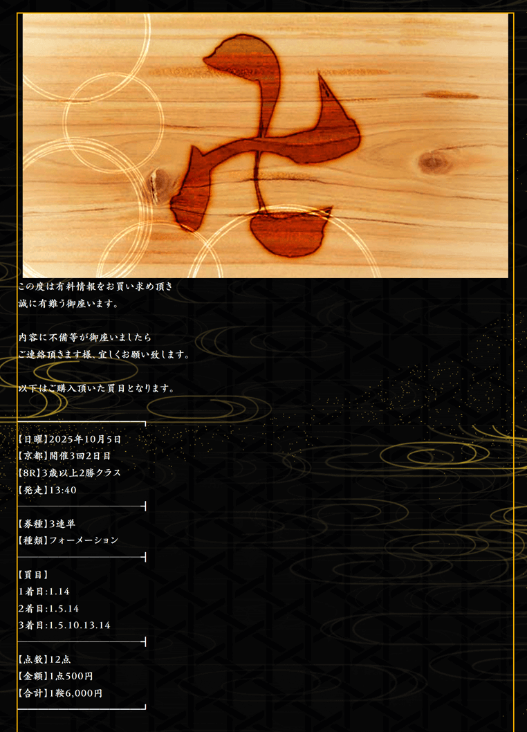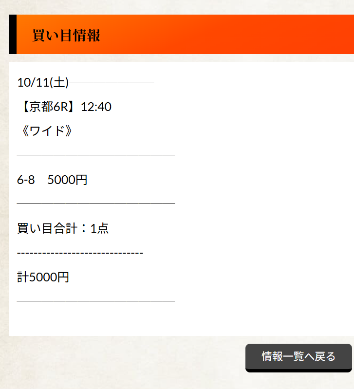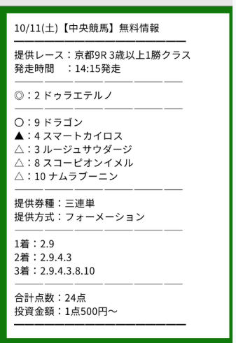 3連単8557.9倍とかもう競馬予想の常識を疑うレベルの的中でした! 17頭立てのブービー人気馬16人気を馬券に入れるとかノリで買う馬券とは違って不可能にちかい、こんな超高額配当が当たる予想があるなら10万20万払っても喉から手が出るほどほしい情報に決まってる。 1万800円の馬券代が1分21秒で256万7370円獲得! 年内競馬しなくても背伸びした生活ができそう。