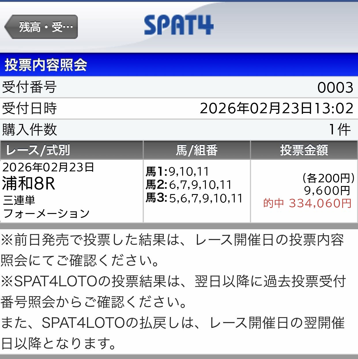 3連単にしては点数は多いけど、1点100円、点数60点、馬券代6千円で3連単4919.5倍当たるなら俺は全然ありだね、俺の師匠である競馬を教えてもらった友達に的中写メ自慢したら40万馬券なんて100点あっても足りない、絶対取れんって言ってた(笑) どんなに競馬歴が長くても使う予想サイトを間違えたら当たるものも当たらないよね、2026年、運命の競馬サイトと巡り合えました。