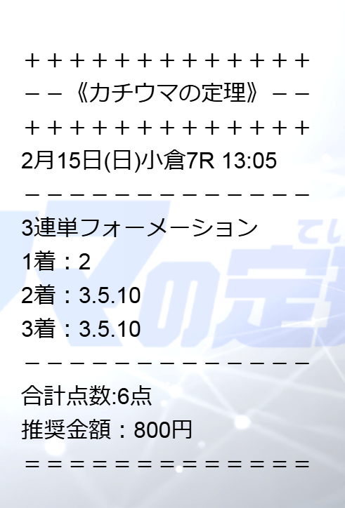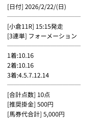 G1裏開催の小倉、高配当当ててもらいましたわ。 G1はガチガチだったし、こっちも買っておいてよかった。 5400円の馬券代、点数18点で1475850円的中。 気になるサイトではあったから1度は使ってみたいと思っていたけど使って正解でした。