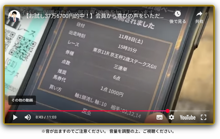 信じて間違いなし、今後このサイトで負けたとしても心中する覚悟持てました。 もう一生稼げないだろうなだけの配当を競馬で掴めた気がします、が、しかし! 序章に過ぎないと通知が来て、2週連続チャンス継続みたいですね~!