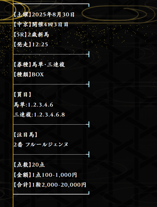 中京の新馬戦【無料情報】馬単40.7倍、3連複33.8倍ダブル的中。 無料情報で7万4500円って他のサイトならポイント情報や微課金有料情報なみの配当じゃないかな? 重賞前に稼げて最高ですわ!