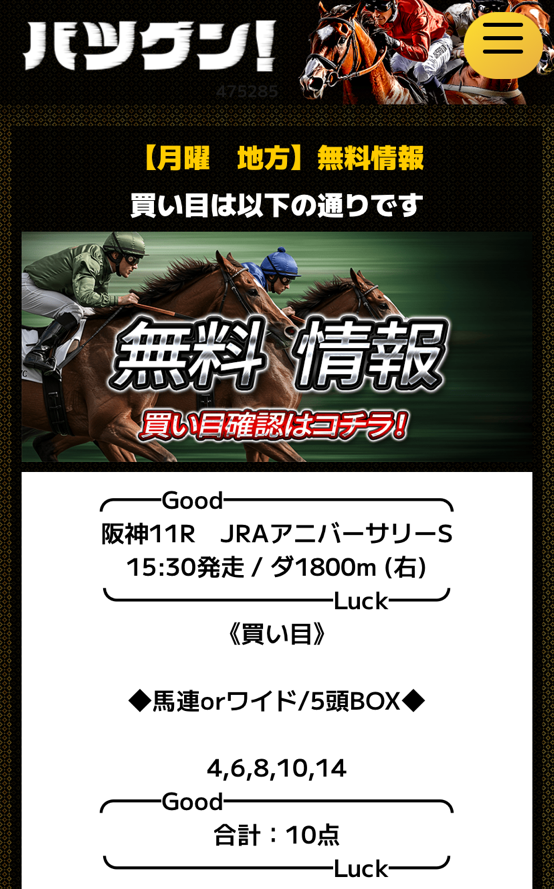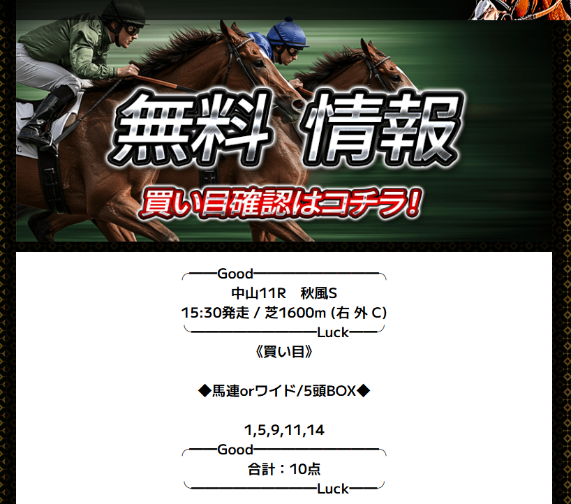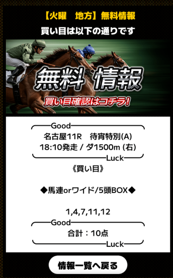 初見で使った無料情報だけど1着から3着全頭当てていました。